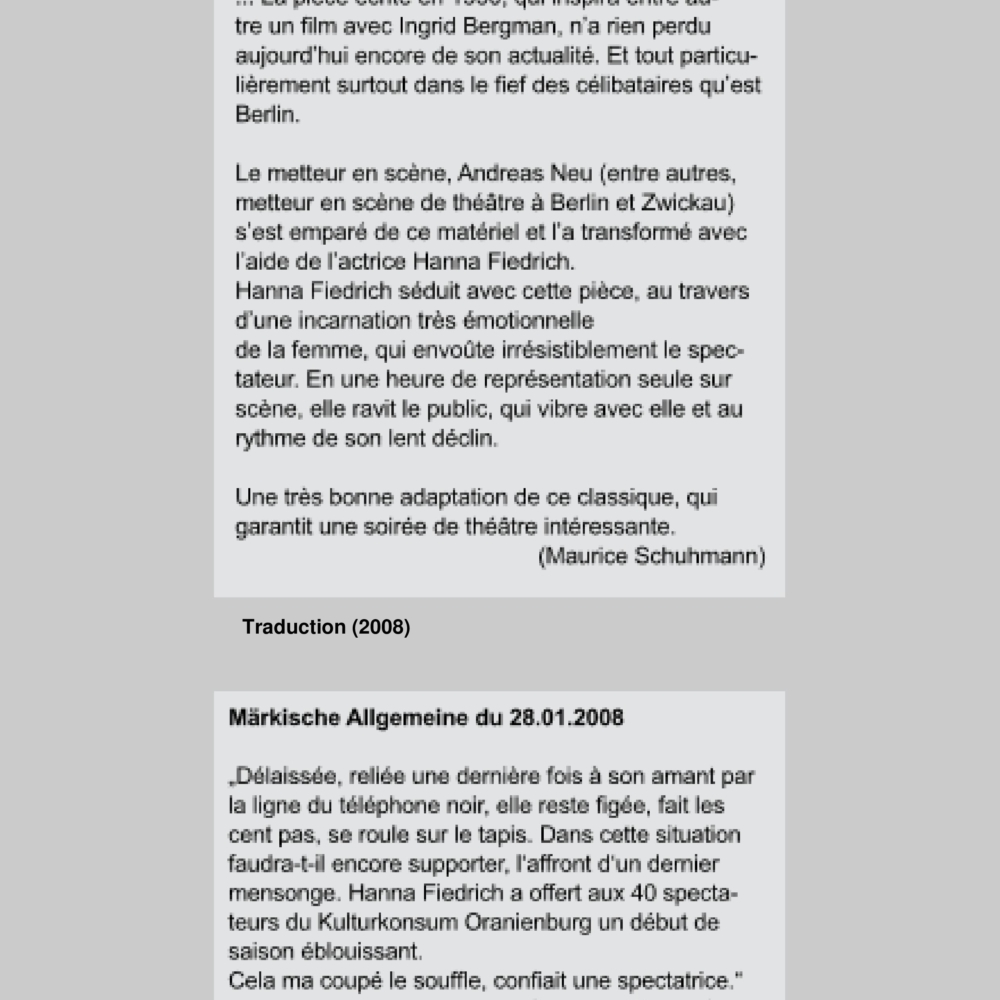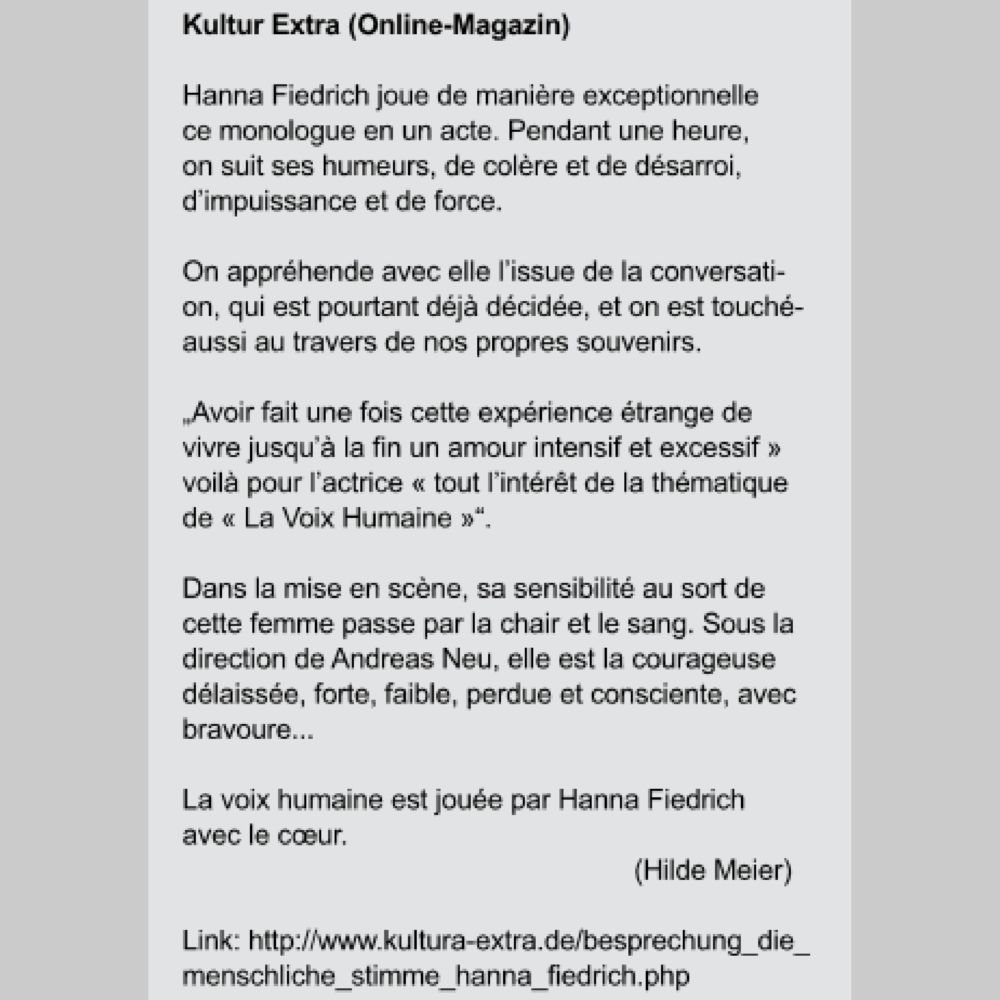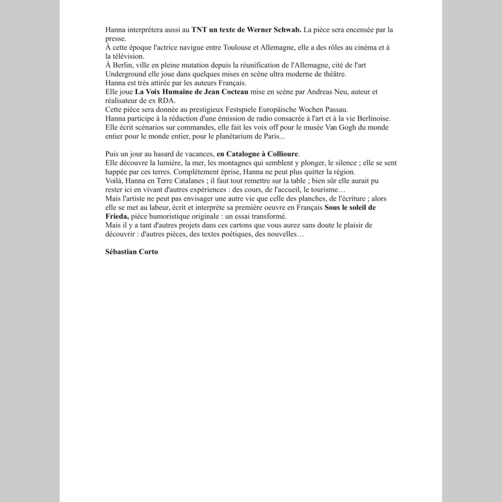 La compagnie Franlia et la comédienne / auteure Hanna Fiedrich vous souhaitent la bienvenue.