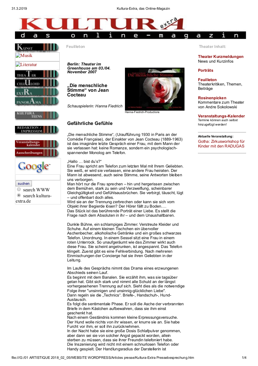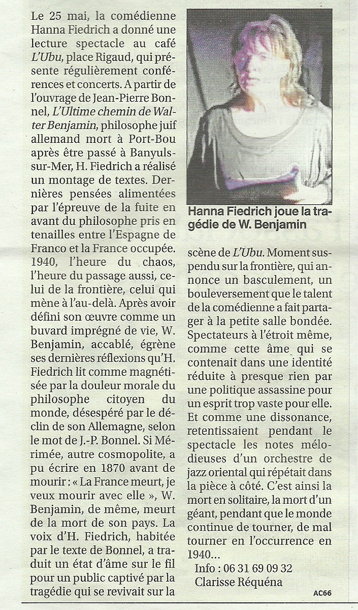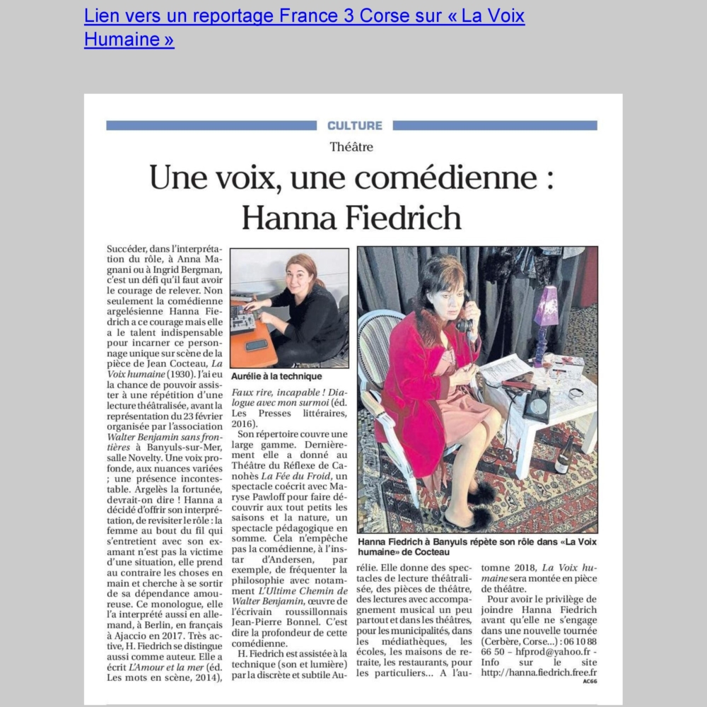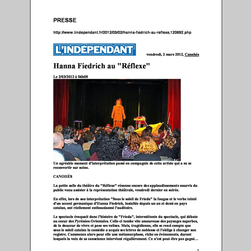 La compagnie Franlia et la comédienne / auteure Hanna Fiedrich vous souhaitent la bienvenue.